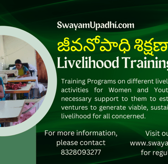 As part of its mission to empower women and youth by providing livelihood opportunities, SwayamUpadhi.com Social Ventures has taken a special initiative of launching జీవనోపాధి శిక్షణా కేంద్రం LIVELIHOOD TRAINING CENTRE. SwayamUpadhi.com will conduct multiple training programs to develop skills and help identified participants launch their own business ventures and provide livelihood for themselves and many others. SwayamUpadhi.com will provide all the necessary support from ideation stage. The units launched after the training programs will be considered for incubation on case to case basis with a specific goal of making them viable, sustainable and profitable.
