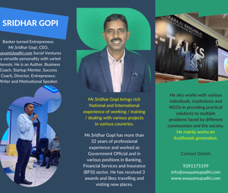 SwayamUpadhi.com Social Ventures is a mission-driven organization committed to creating a better future for marginalized communities. We work tirelessly to uplift women, youth, artisans, small entrepreneurs, farmers, Micro Small and Medium Enterprises (MSMEs), Self Help Groups, and Farmer Producer Organisations. By providing support and resources, we enable individuals and institutions to thrive and contribute to sustainable development.